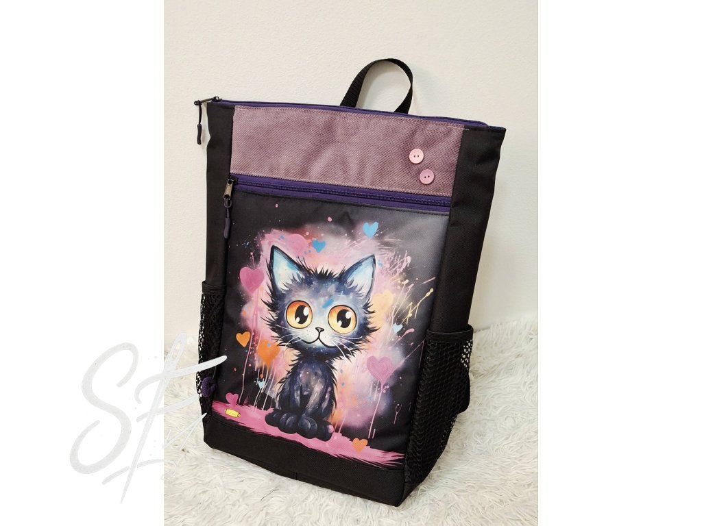 Batůžek z krásného vyztuženého panelu z kočárkoviny a potah.látky..boční díl z batohoviny plus kapsy na pití..zadní díl z vyztužené batohoviny plus polstrované popruhy š-4cm..uvnitř dvě podél otevřené kapsy.