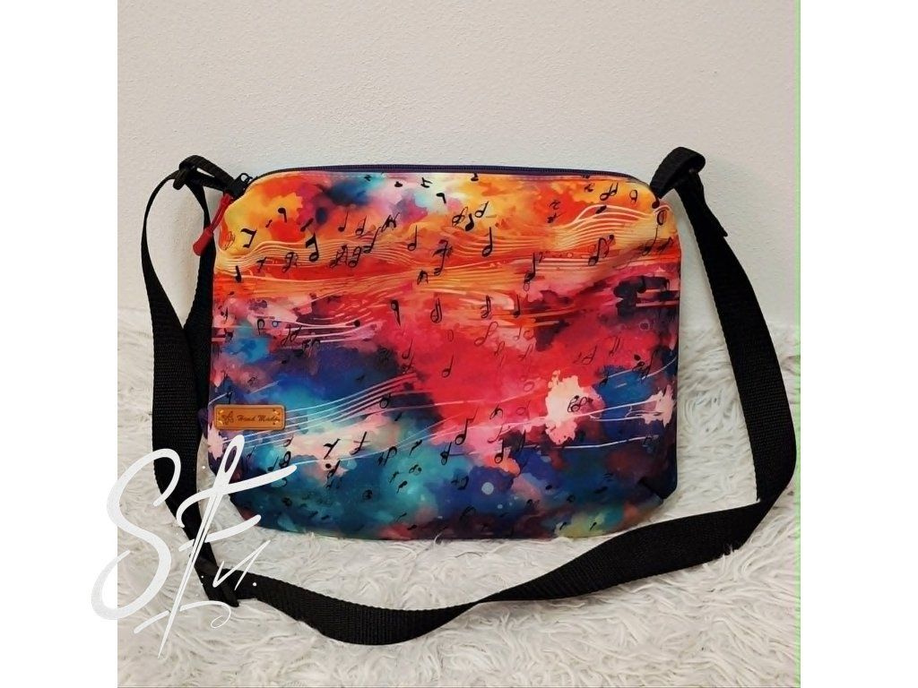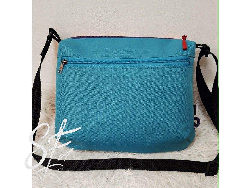 Kabelka z krásného vyztuženého softshellu..zadní díl z batohoviny plus zipová kapsa, uvnitř dvě podél otevřené kapsy.